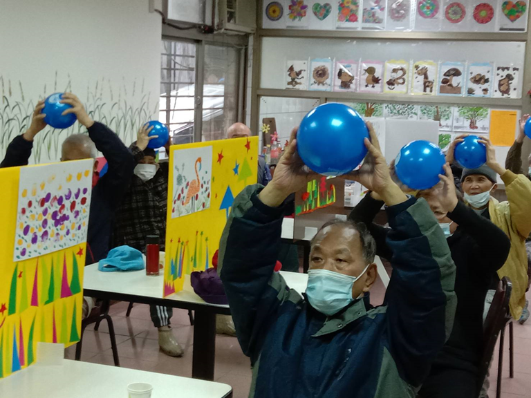 預防及延緩失能課程-加上彈力球、彈力帶的健康操,讓活動更有變化